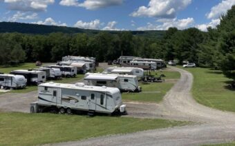 Falling Waters Campground is pet-friendly. It is close to many trails, parks, and state forests in Sullivan County.