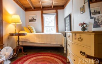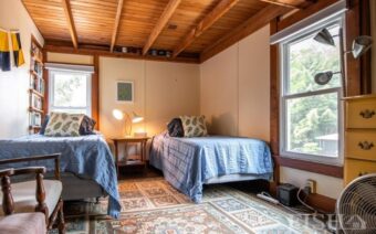 The third level of Hillcrest has a large bedroom with a queen size bed.