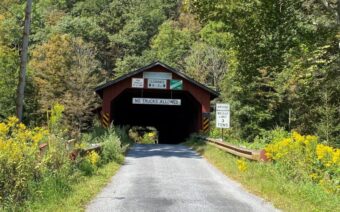 The Hillsgrove Covered Bridge was built in 1850 by Sadler Rogers, a prominent local builder. At 186 feet long, it is the longest of Sullivan County’s three remaining covered bridges. The bridge is a Burr arch truss bridge. It was added to the National Register of Historic Places in 1973.