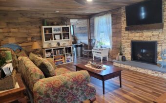Holly Hill Haven comfortably sleeps seven guests with three bedrooms and two full baths. Amenities include a washer and dryer, window unit air conditioners, all bedding and towels, WiFi, smart TV, an indoor fireplace, an outdoor firepit on the porch, and more. A picnic grove features a park grill, picnic table, and firepit situated on 4.8 acres.