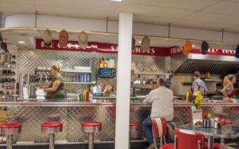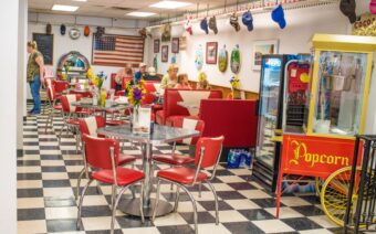 The old-fashioned soda fountain serves breakfast and lunch with a fun, nostalgic flair. Save room for home-baked pies, cakes, and other desserts. They also serve delicious ice cream treats like sundaes, floats, and shakes.
