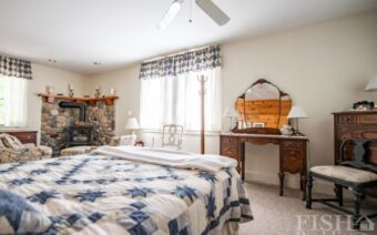 This cottage has an open kitchen/dining room area leading to a flagstone patio off of the kitchen with a fire pit; great for roasting marshmallows and making memories! The living room has a bay window to enjoy the sunny days and a TV/DVD player (no cable) for late night movies. There are also two bedrooms on the first floor with a shared adjoining full bathroom; one with a full bed and one with two twin beds. On the second floor there is a master bedroom with a queen sized bed with adjoining full bathroom shared with the second bedroom with three twin beds.