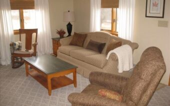 Part of the original 1850 homestead of Julius Lusch, the lodge is privately situated on six acres. An open living room and dining room provide plenty of space to relax, complete with a cast iron gas stove and a flat screen TV. The home also includes a fully equipped kitchen. Outdoor decks, a three-season sunroom, and an outdoor fire pit offer excellent spots to enjoy the views.