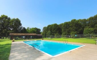 During the day, you can cast a fishing line in the creek or ponds, hike the nature trail, swim in the outdoor pool, or simply relax by your tent or camper. They also have rec areas for basketball, beach volleyball, baseball, and more.