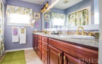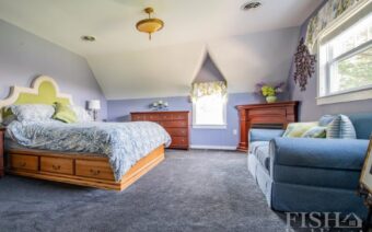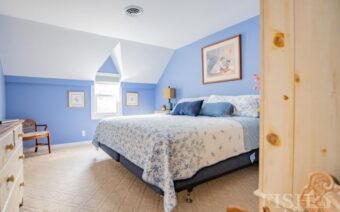 The second floor is made up of five bedrooms. The first and second bedrooms have twin size beds and the third and fourth bedrooms offer queen sized beds. The private bathroom has a tub/shower combination. Finishing off the second floor is a master bedroom that overlooks Eagle Mere Lake. It is furnished with a king size bed, electric fireplace, and a private bathroom with a double sink and a tub/shower combination.
